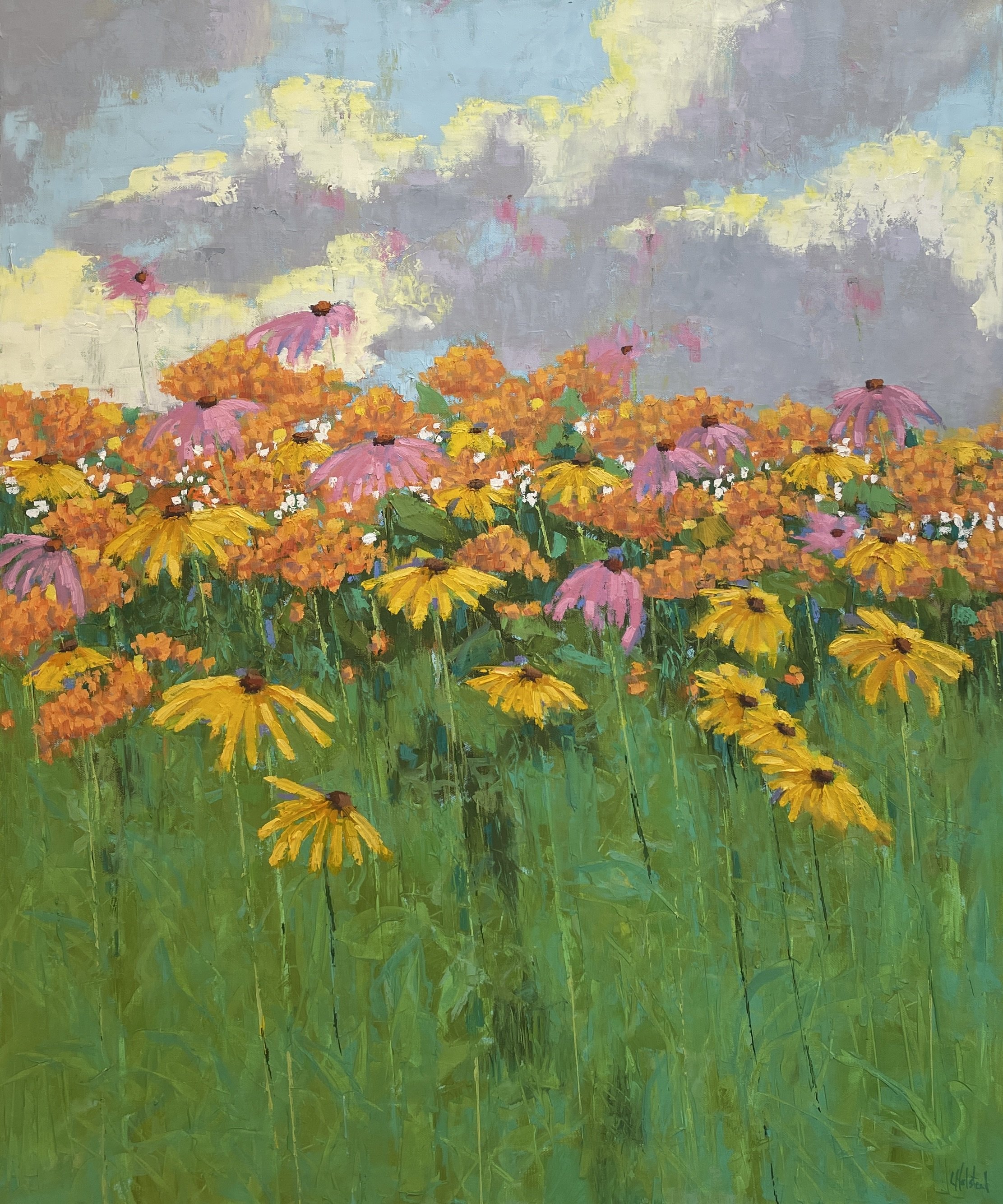 This painting is included in the upcoming group show at Second Street Gallery, “Fine Art and Flowers”. The show features the nature inspired paintings of 7 local artists. This is one of 5 paintings that were created with presence, intuition and openness to what is true. The paintings celebrate the fragile persistence that imbues all of nature. The show opens with a Preview exhibit on April 2, 5:30 to 7:30. And opens to the public First Friday on April 3, 5:30 to 7:30. The show runs until May 22. More information about many events at secondstreetgallery.org.